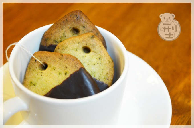 這是一個茶包造型的茶餅乾,不單外表是茶包內在確確實實的也是用紫薫烏龍茶包做的喔,吃起來有薰衣草的香氣與烏龍茶的香味,香脆的餅乾因為有茶讓整體吃起來一點都不甜膩