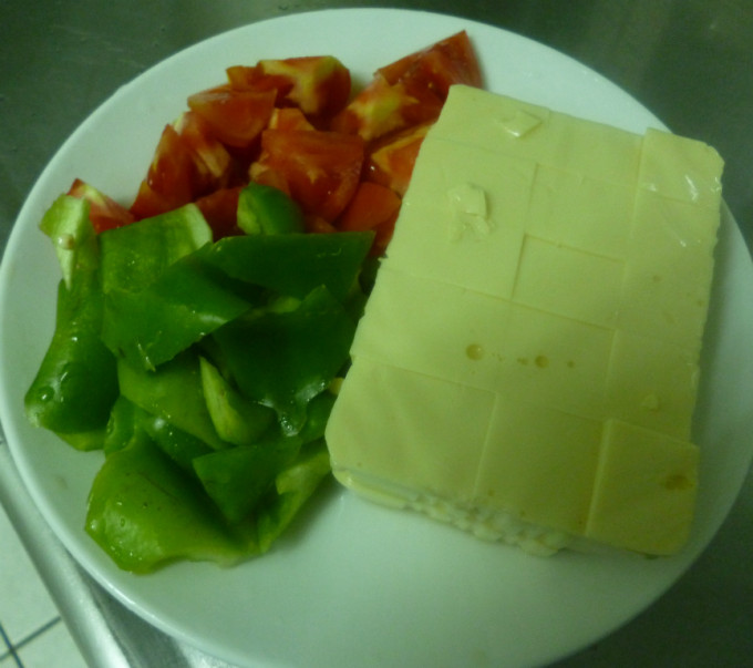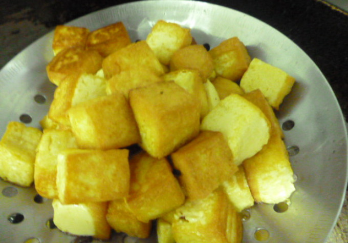 倒入番茄和炸好的豆腐,最後加入青椒拌炒均勻起鍋即可