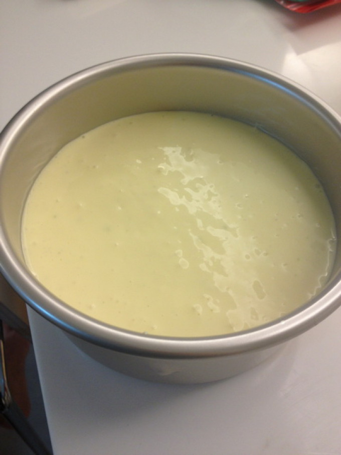 烤好後取出(還不要脫模),完全涼透在表面封上保鮮膜,放冰箱冷藏3-4小時