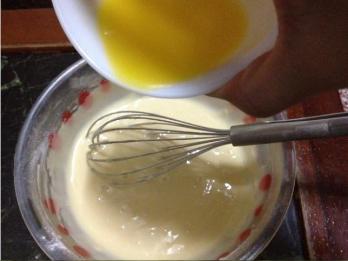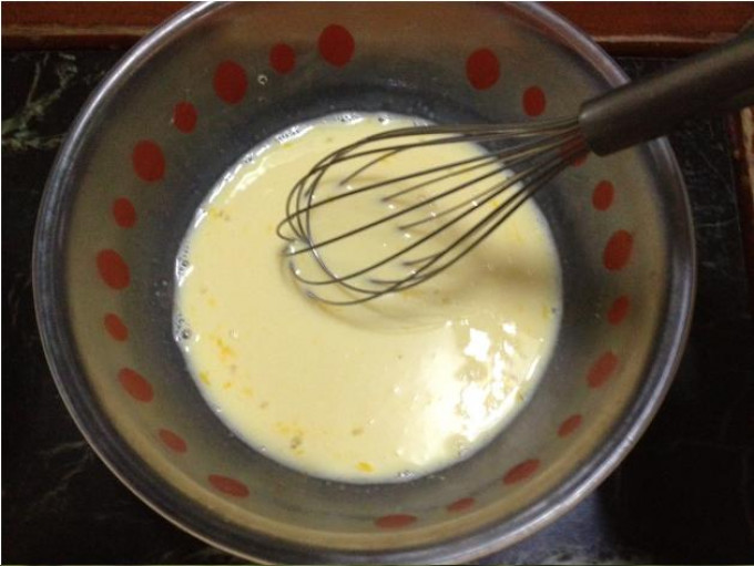 將牛奶(1)、雞蛋、蜂蜜攪拌均勻。