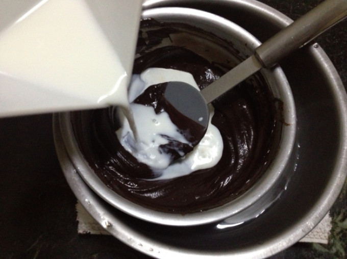 巧克力餡呈現光滑狀即可在旁待涼備用。