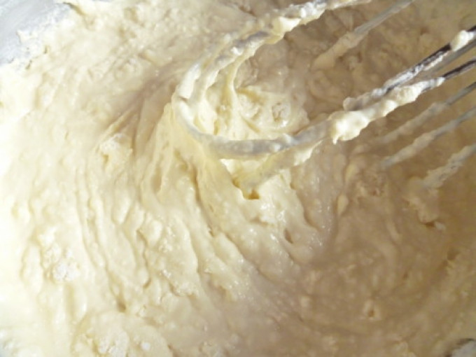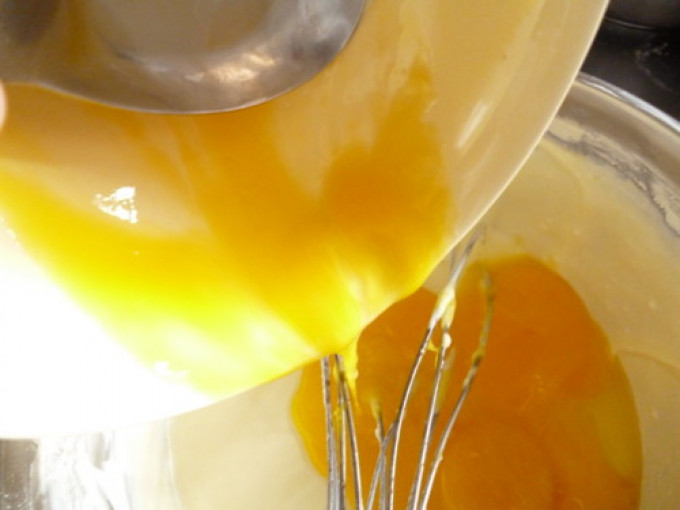 加入5顆蛋黃繼續攪拌均勻,加入過篩的