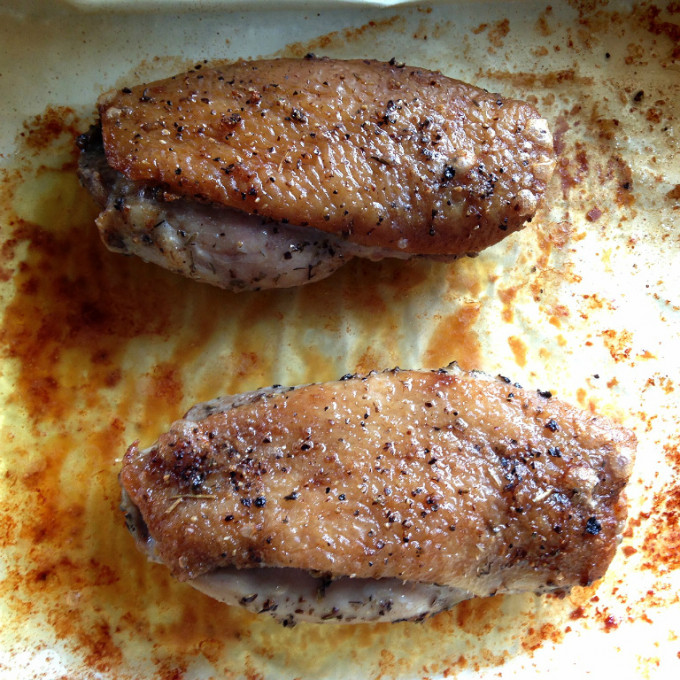 鴨皮那面朝上,送進烤箱烤約20分鐘