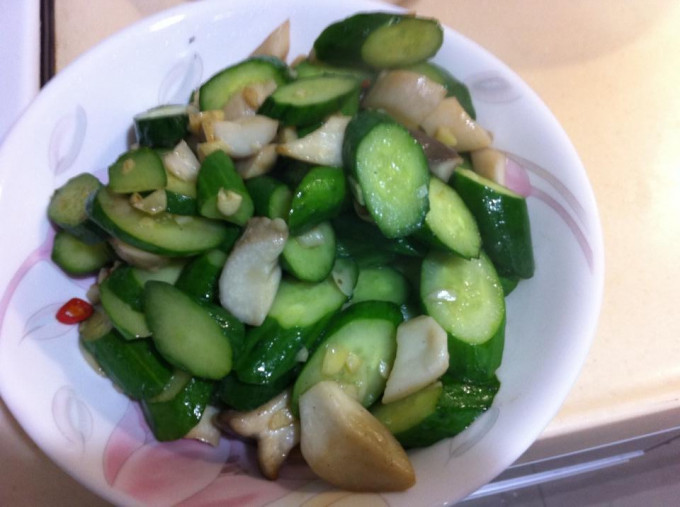 小黃瓜、杏鮑菇、洗淨後切片 蒜切末辣椒切塊