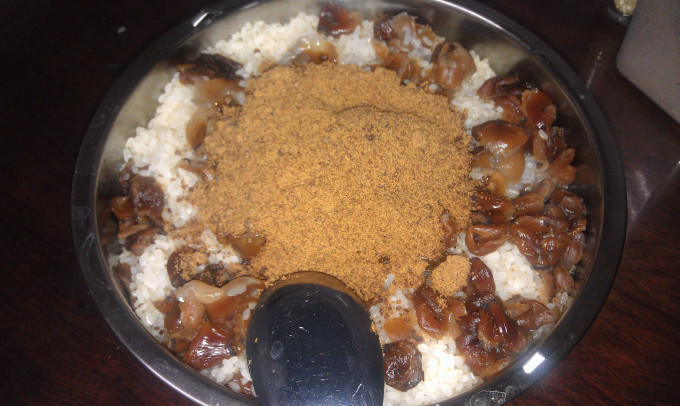 待電鍋跳起後,將黑糖加入拌勻(依自己喜歡的甜度調整),再放回電鍋悶 10分鐘