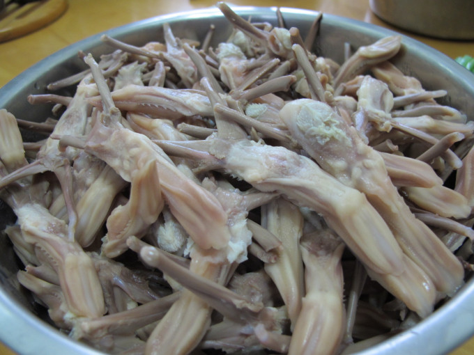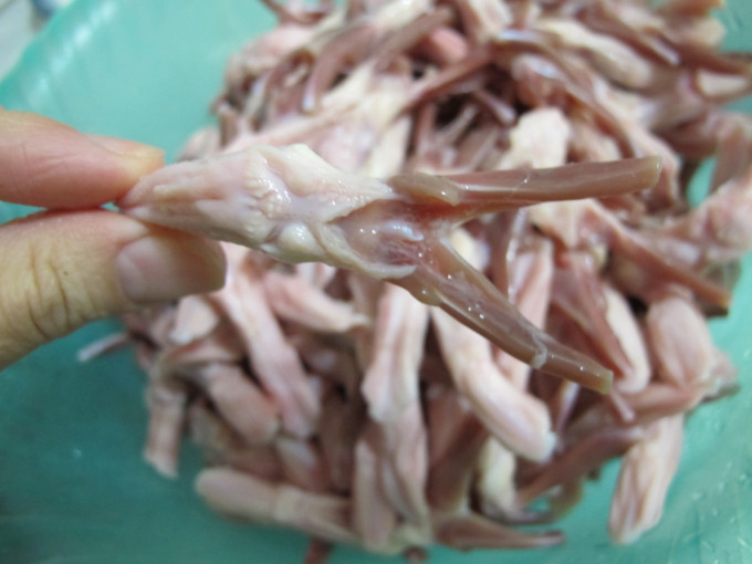 鴨舌頭剪去氣管,洗淨備用