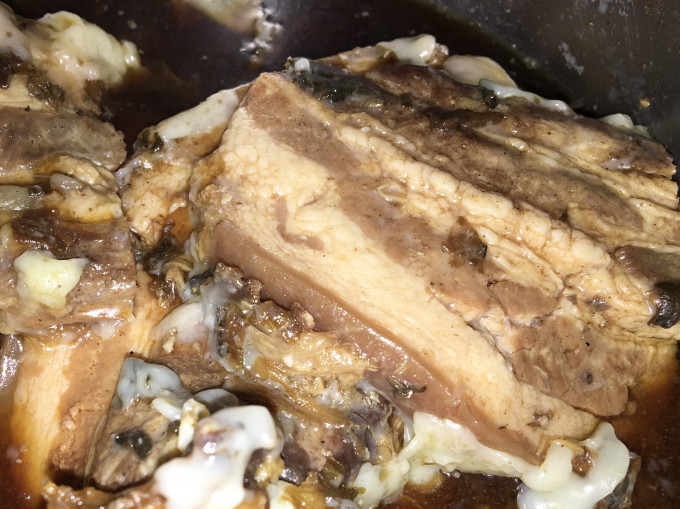 1. 滷肉 : 電鍋鍋內放入整個五花肉、洗泡乾淨福菜、八角、糖、醬油、醬油膏、蒜頭切半、五香粉、洗泡好香菇不用切,水跟肉一樣高。直接魯 、電鍋加水要跳兩次。 2 蝦米洗乾淨泡水,水淹過一點蝦米就好了(泡蝦仁的水留著),之後撈到炒鍋炒乾。 3 一般大小吃飯的碗 米一碗,米洗乾淨瀝水不要泡,留著碗。