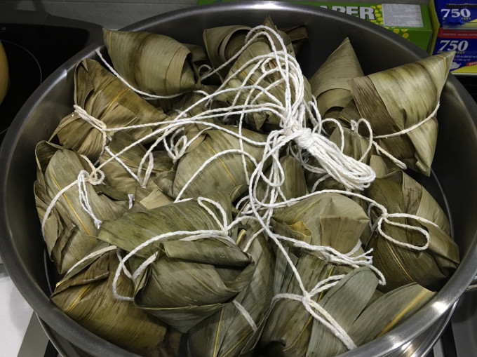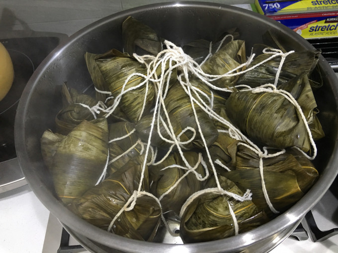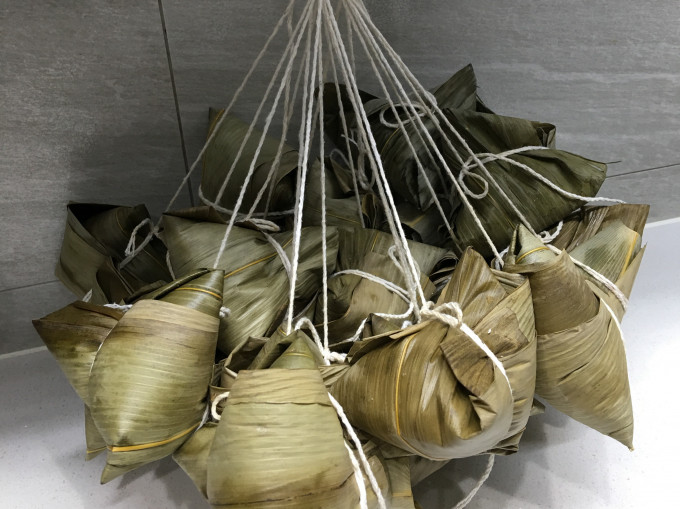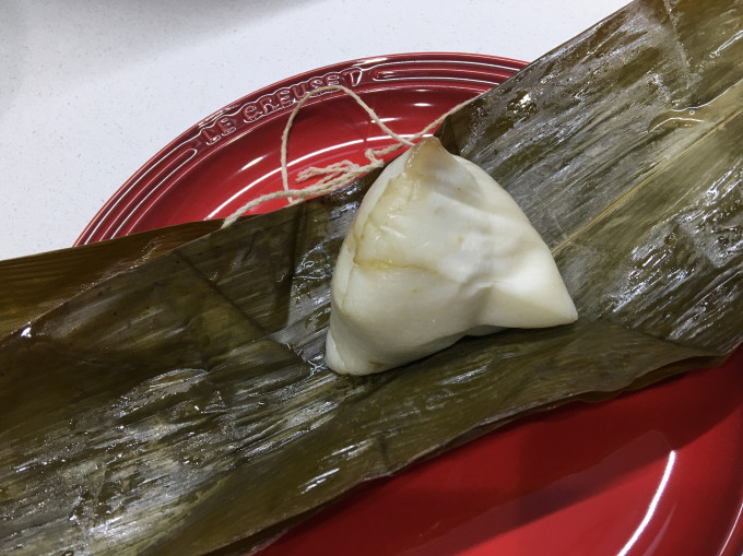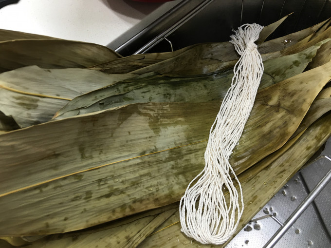 包好後表面抹少許油,防止沾黏,然後包入棕葉。