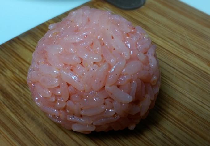 手再沾少許冷開水,再添加少許彩米蓋上內餡,用手捏緊成糰