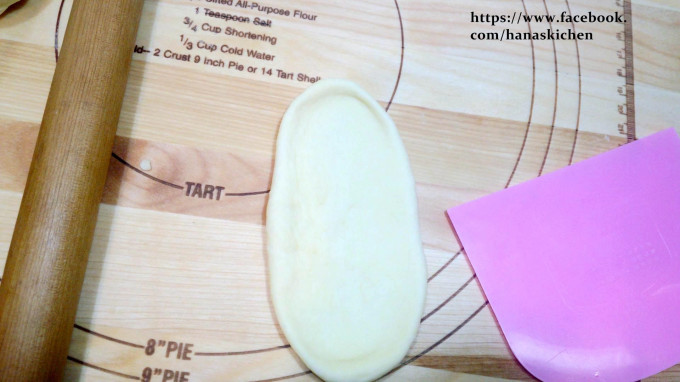再將麵糰上下桿成長橢圓型.