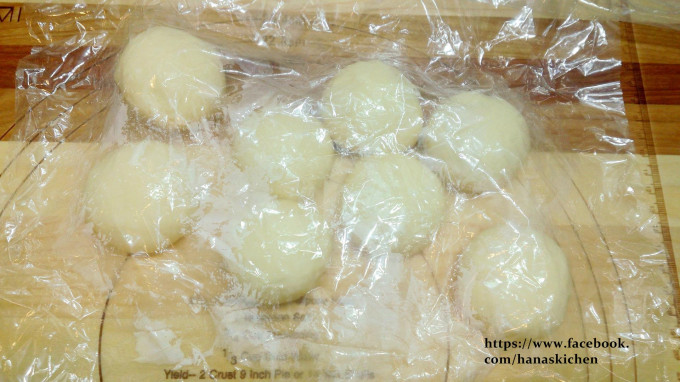 發酵完畢之後.分割成8份.然後揉圓.上面蓋上塑膠袋.讓水份不會散失.然後休息15分鐘.