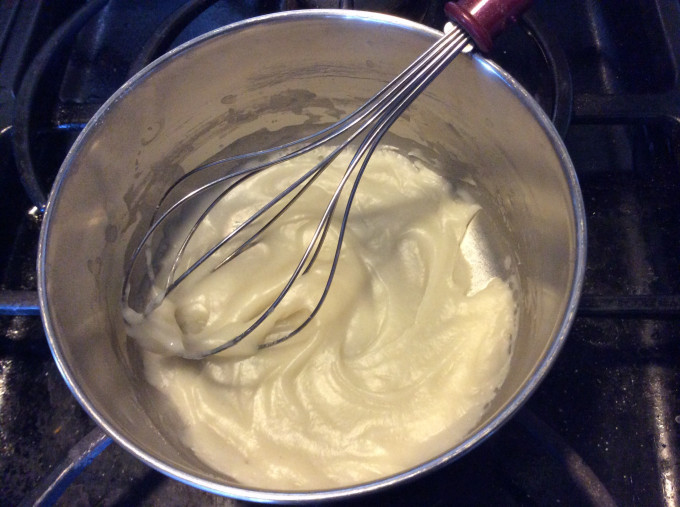 先製作湯種:水、高筋粉在鍋中以小火慢慢煮,邊煮邊攪拌,煮至成糊狀並有紋路即可熄火,蓋上保鮮膜冷藏。
