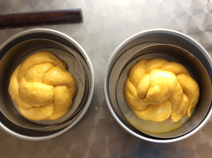 最後發酵20分鐘,表面刷上蛋液,350°F烤15-20分鐘。
