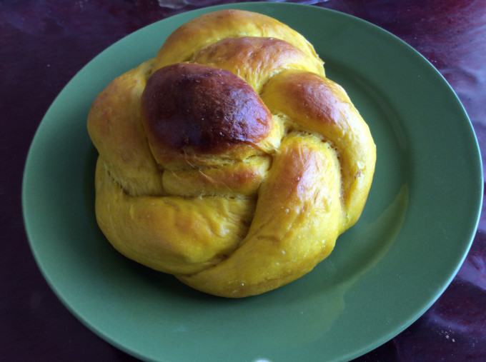 湯種加上低溫發酵的麵包非常的鬆軟,帶著南瓜天然的甜味,不需包餡就很好吃了。而且黃澄澄的麵包煞是好看。