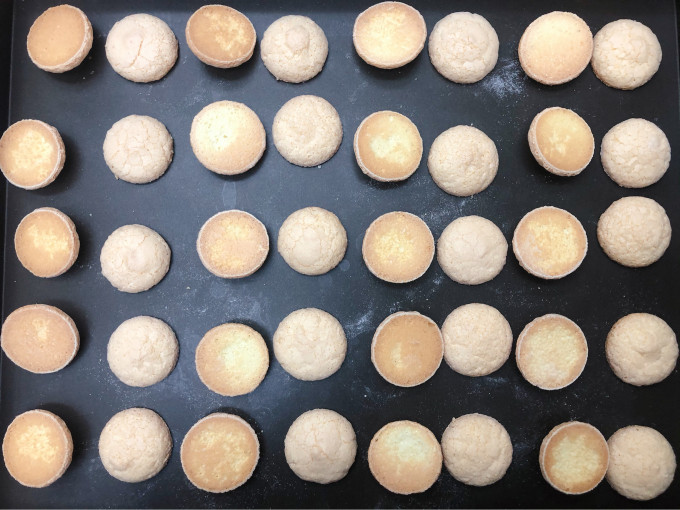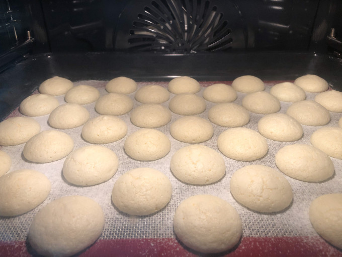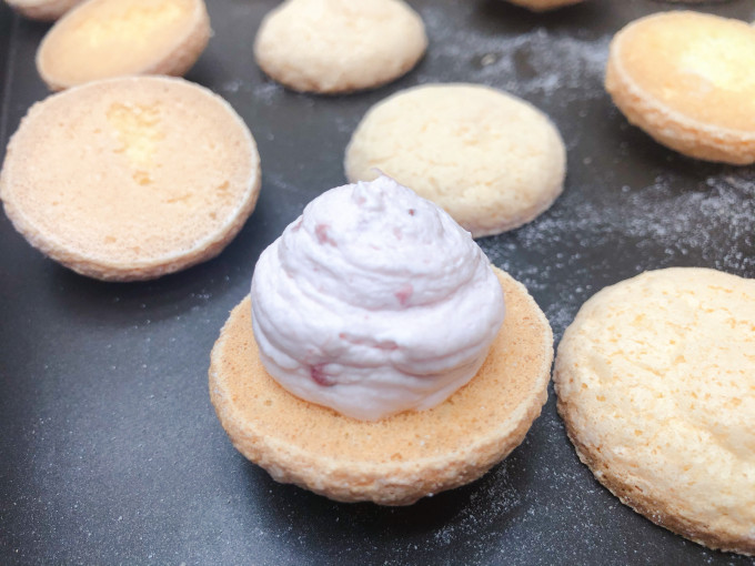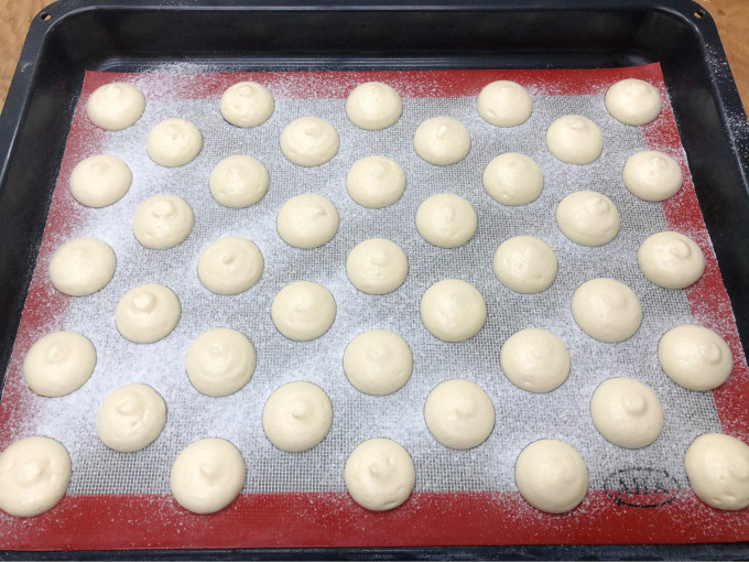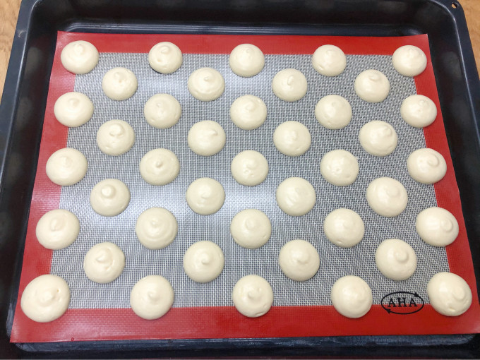 將麵糊裝進套有圓形花嘴的擠花袋中,擠出直徑約4cm的形狀。