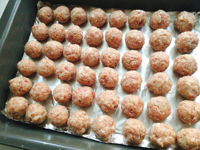 肉丸做好放入冰箱冷藏至少2小時,使其定型