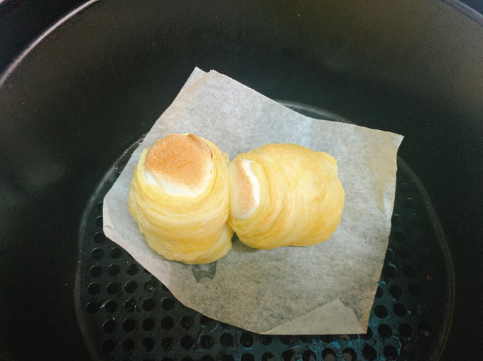 氣炸5分鐘(可以把酥皮的分隔紙也一起放進去,當烤紙用😃)