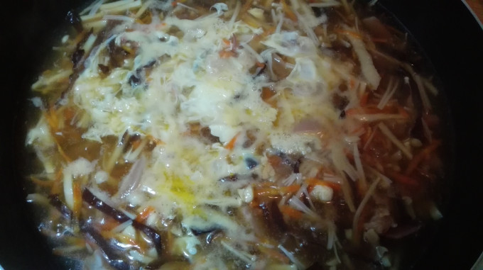 雞蛋打散,淋入湯汁。