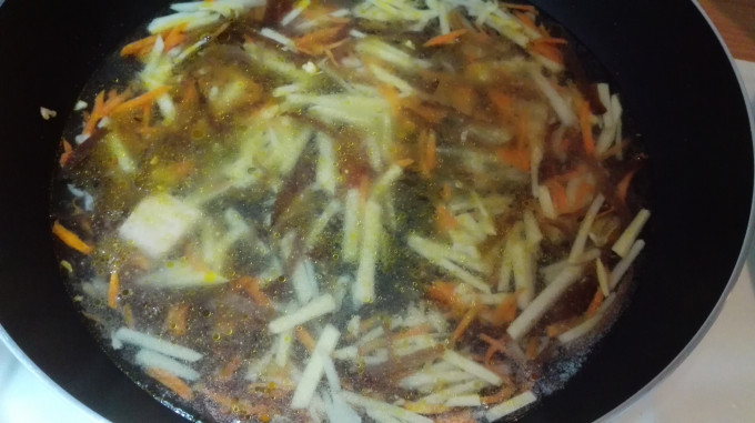 注入高湯800cc,煮滾。