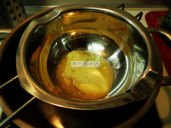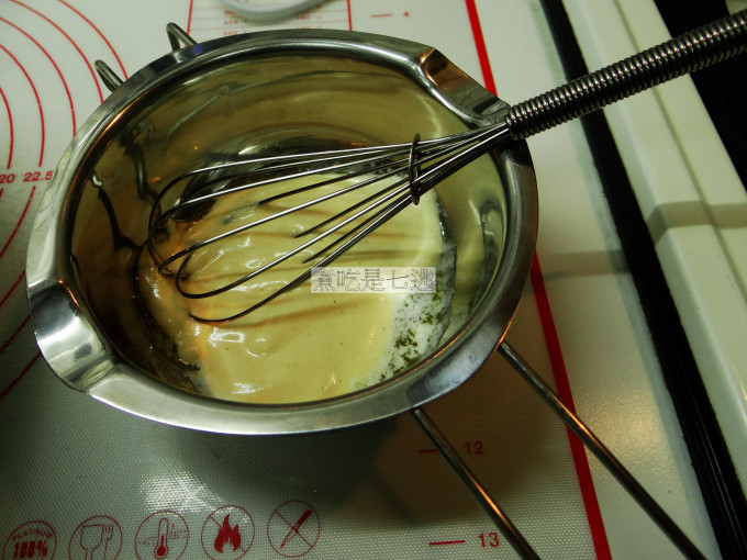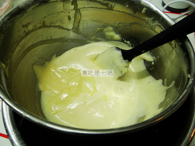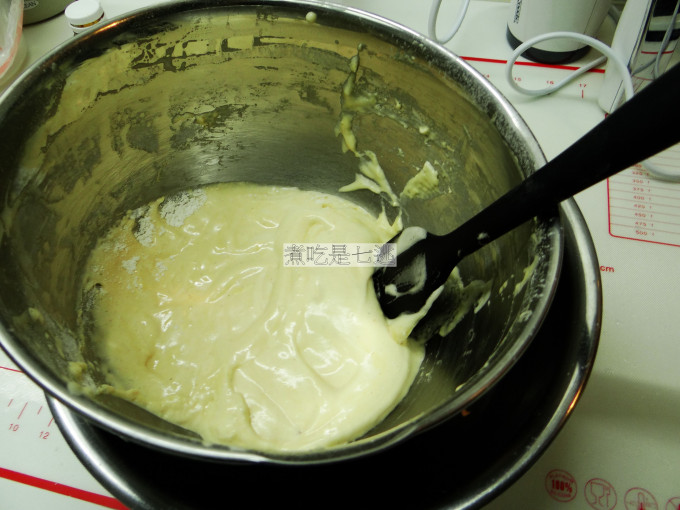 舀一點蛋糕糊出來和融化的奶油拌均勻