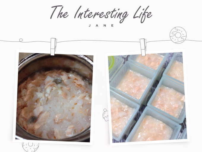 提醒各位媽咪,我家小寶貝吃了「大大」比較稀,所以一天吃鮭魚口味,另一天吃別的口味,請依狀況自行調配喔!