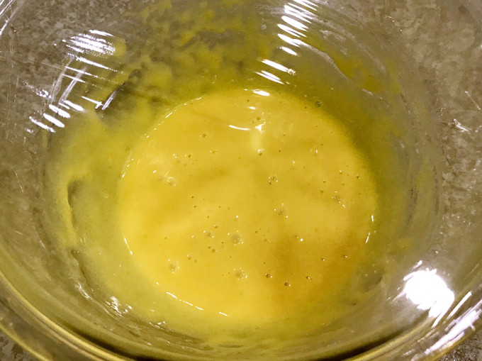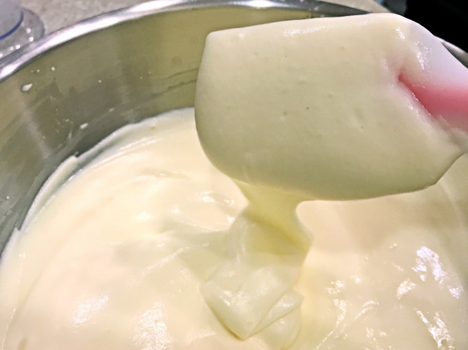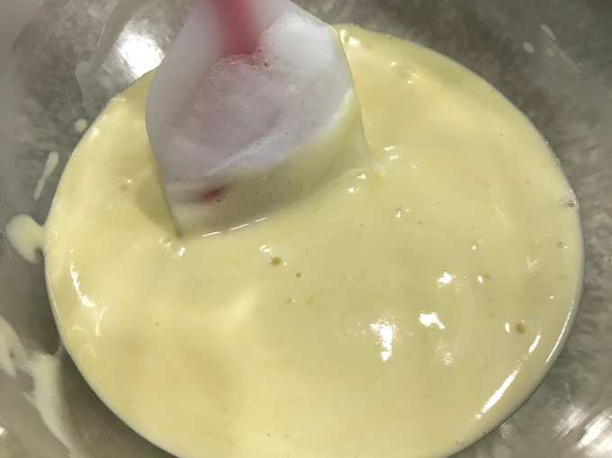 乳化完成的蛋黃糊,應該是流動性的且順滑的狀態。