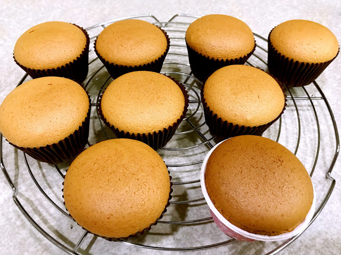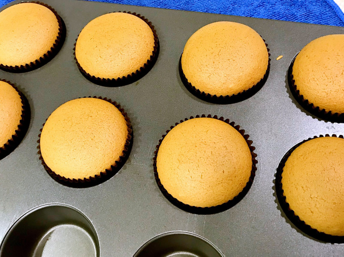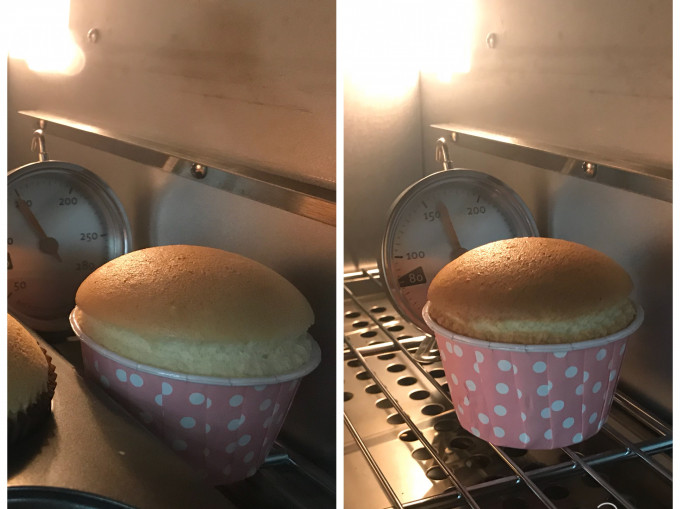 ✍️失敗案例分析:杯子蛋糕放在烤箱中的位置也很重要,一般烤箱的最裡面爐溫較高,靠近烤箱門的爐溫較低,圖中的上方可以明顯看出差異,後來我就調整杯子蛋糕要放在烤箱的正中央,圖中的下方就可以看得出來改善了很多,顆顆飽滿。