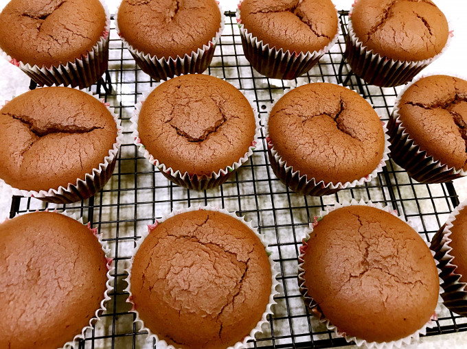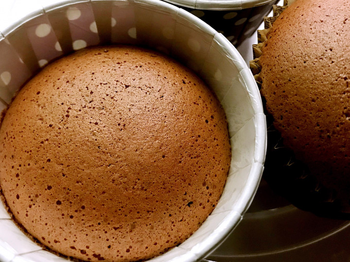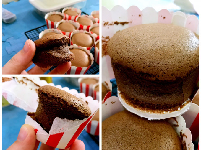 ✍️失敗案例分析:若是蛋糕表面不光滑,有很多小氣孔,是因爲攪拌麵糊消泡了,這個狀況容易發生在可可戚風杯子蛋糕,因為可可容易有消泡的反應,解決方式要燙麵。