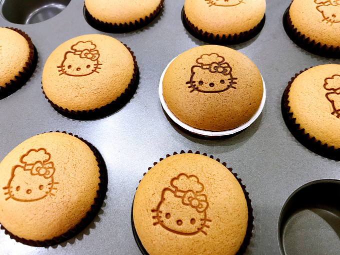 等蛋糕完全放涼後,可以在表面烙上卡通圖案,瞬間變得超級可愛的杯杯蛋糕😍