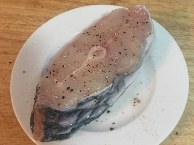 鮸魚略做清洗後,擦乾。