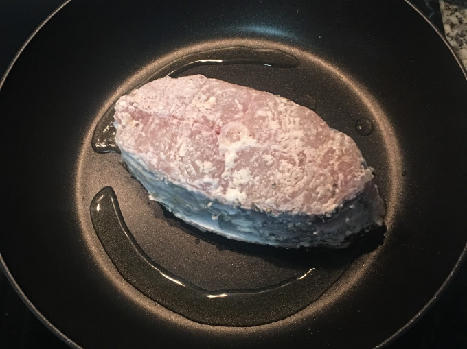 平底鍋燒熱後放少許油,下魚片煎。