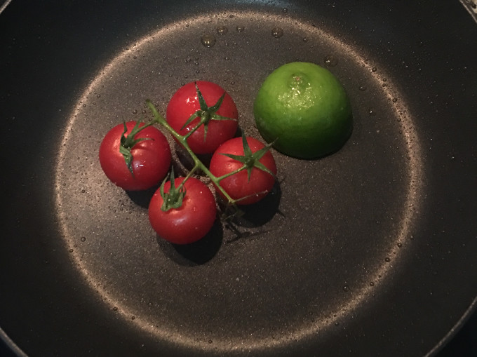 原鍋放入蕃茄和切半的檸檬,灑些橄欖油和鹽即可。