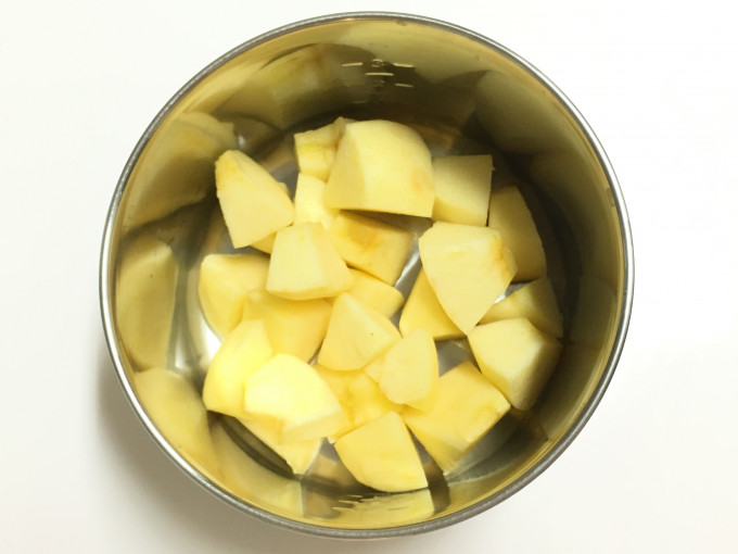 蘋果削皮、去籽、切塊。