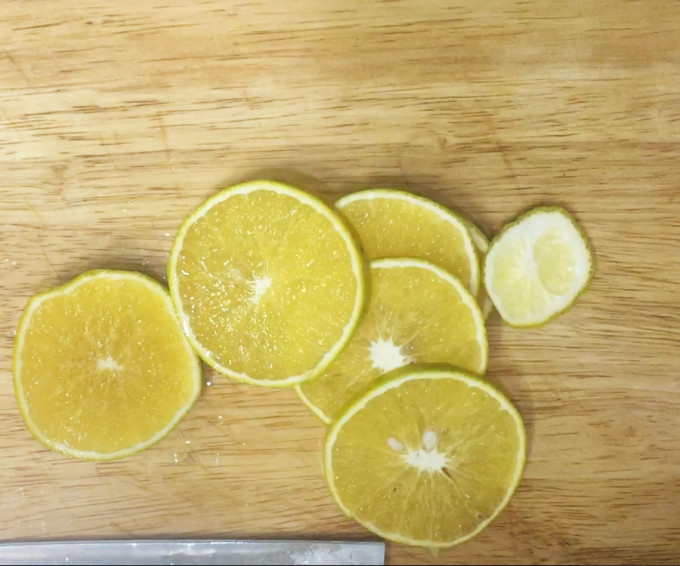 1 顆柳橙切片,柳橙皮請先保留起來備用