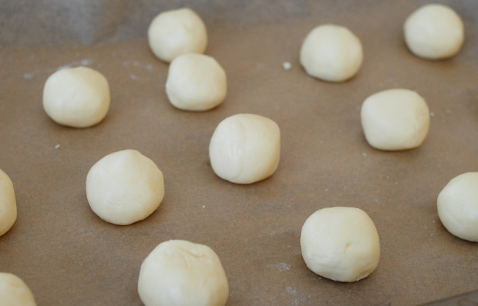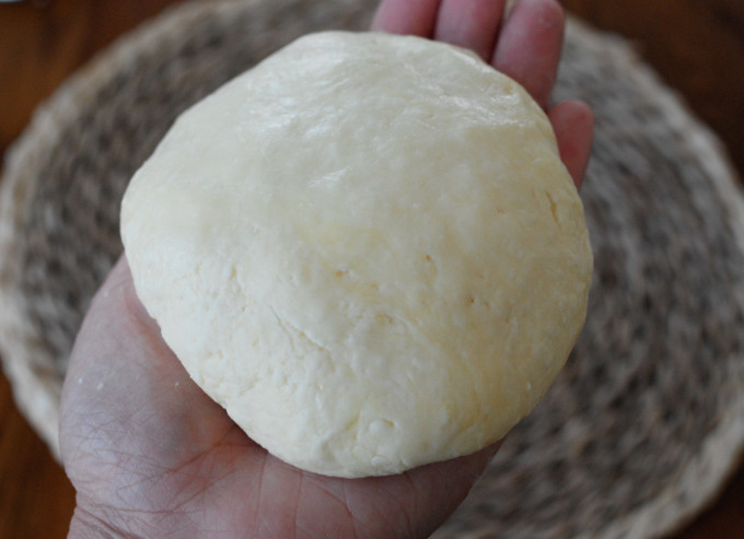 逐少加入牛奶,搓成麵團 (未必需要用全部的牛奶,如麵團太乾,可加點牛奶,如太濕潤,加點糯米粉)