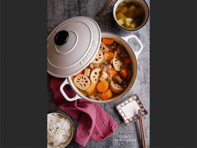 小叮嚀: 紅蘿蔔和洋蔥能讓醬汁更鮮甜,此為基底不建議更換;蓮藕換成馬鈴薯也OK,做法不變;或是你同時想要蓮藕搭配馬鈴薯也行,那麼蓮藕和馬鈴薯各125g,配方不變,但馬鈴薯要改成最後20分鐘才下才不會過爛。