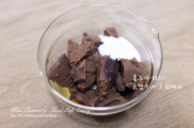 無鹽奶油先放置常溫軟化 將全部材料攪拌均勻至無顆粒