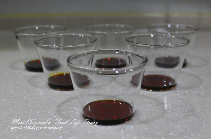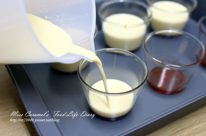 完成之後就可以分裝到杯子中放涼 今日製作150ml 的耐熱玻璃杯 數量約6個