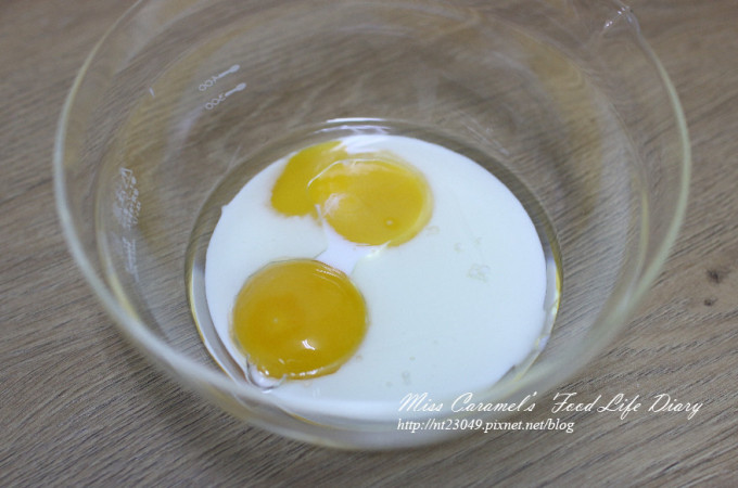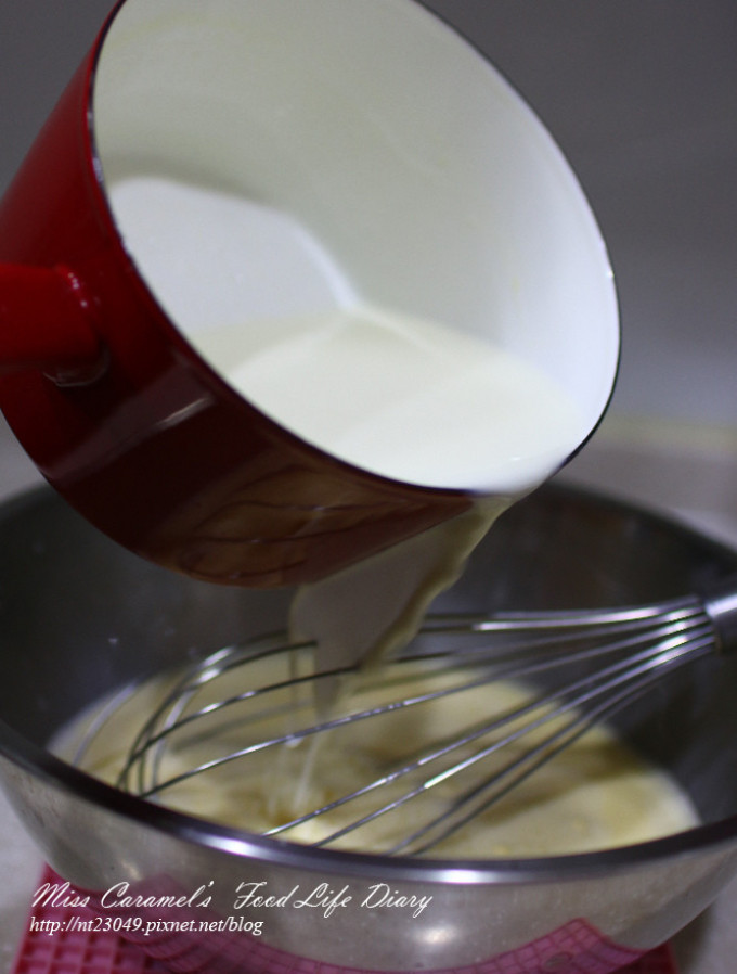 牛奶 、植物油、蛋黃先攪拌均勻