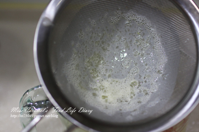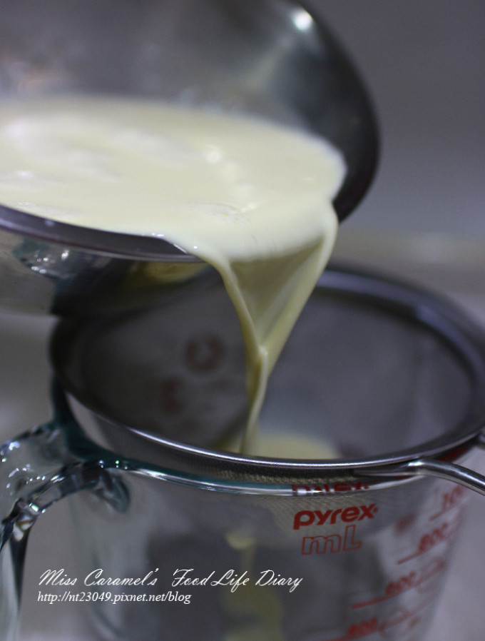 攪拌完成後 再過濾2次 布丁液更為滑順 吃起來會比較細緻喔