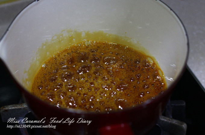 砂糖80g+水20g 煮焦後再倒入30g熱水