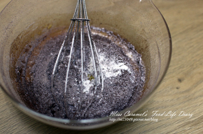 加入過篩的麵粉跟可可粉 輕輕攪拌均勻