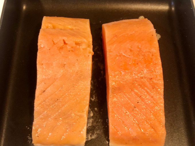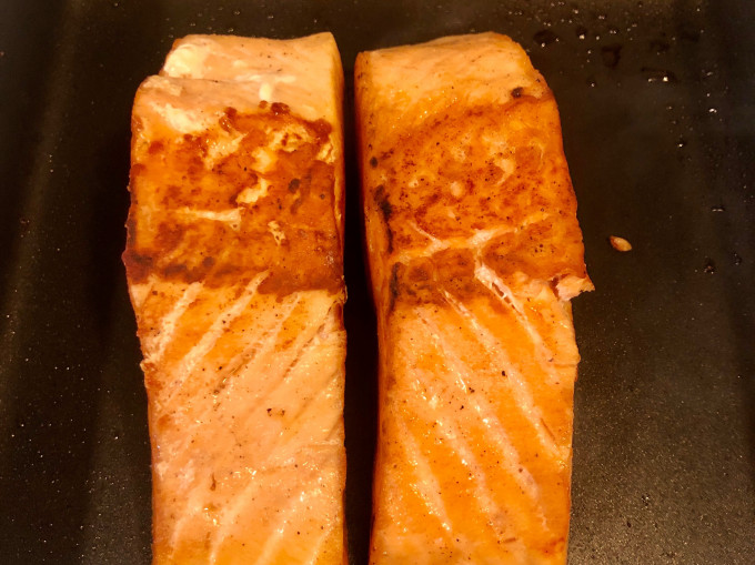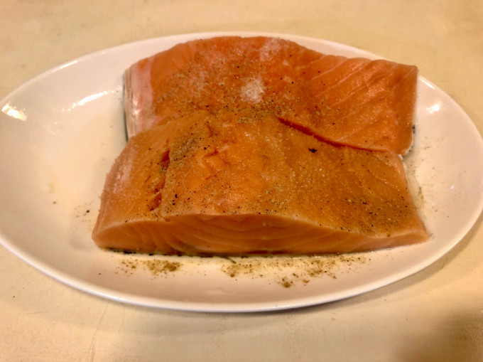 鮭魚每面的表面煎恰恰 不需煎熟即可關火