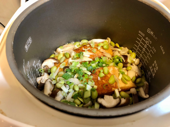 放入電子鍋選擇菜飯功能 如無此功能用一般煮飯功能也可以