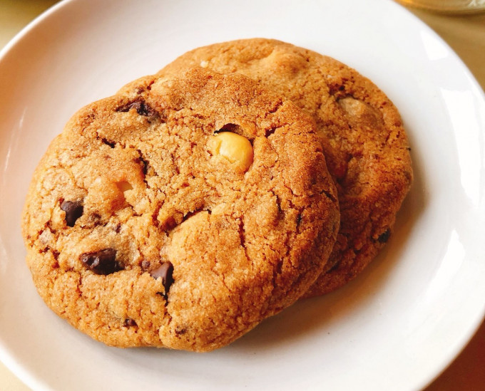 5) 最後加入巧克力豆、夏威夷豆(先切小塊)拌勻,麵糰即完成。