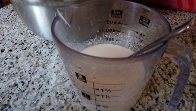 把白醋與牛奶混合。