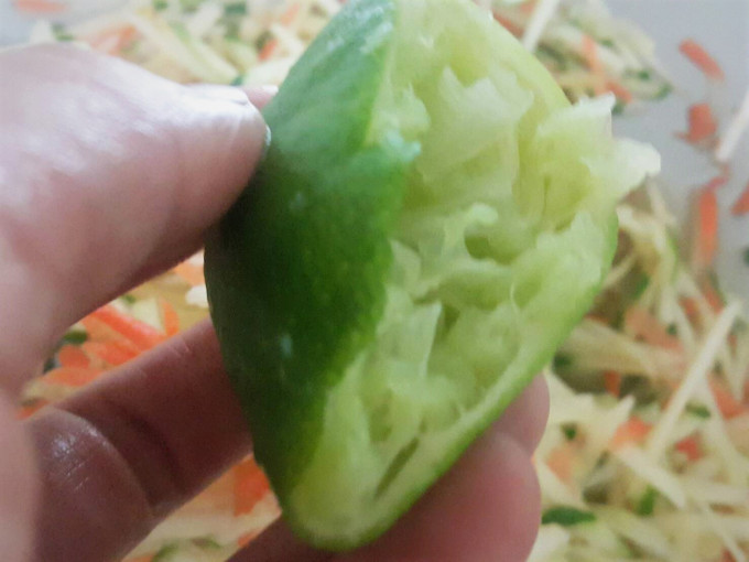 擠入半顆檸檬汁增加果香味還可讓蘋果絲保持鮮度不變黑