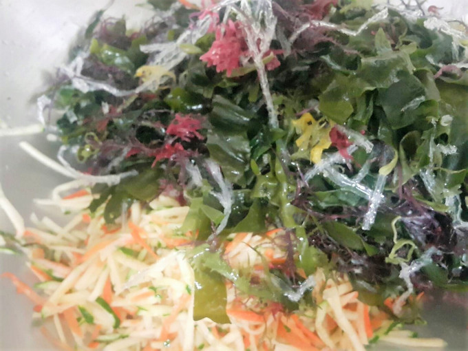 再將泡軟的海藻絲拌入
