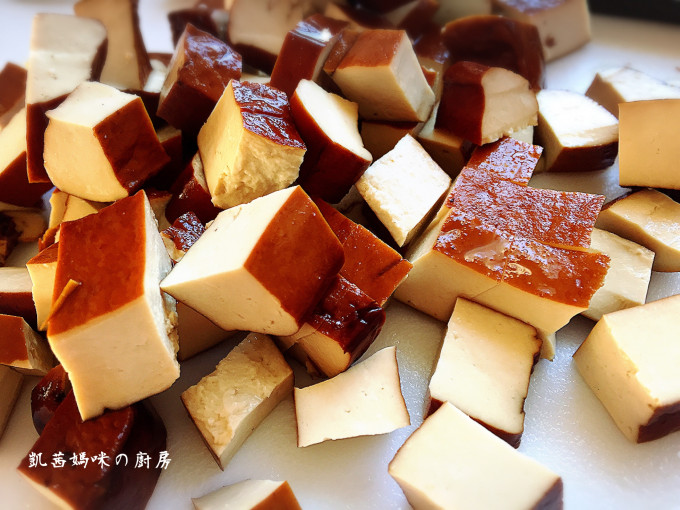 先將豆乾切小丁,備用。