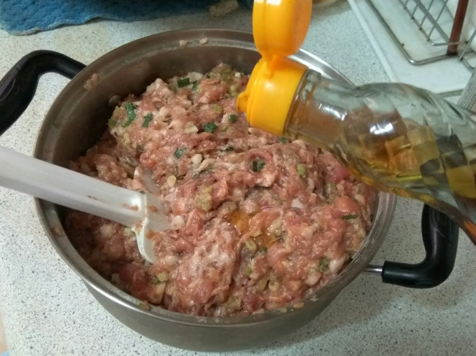 加入白胡椒粉和香油,餡料的香氣就會出來囉!